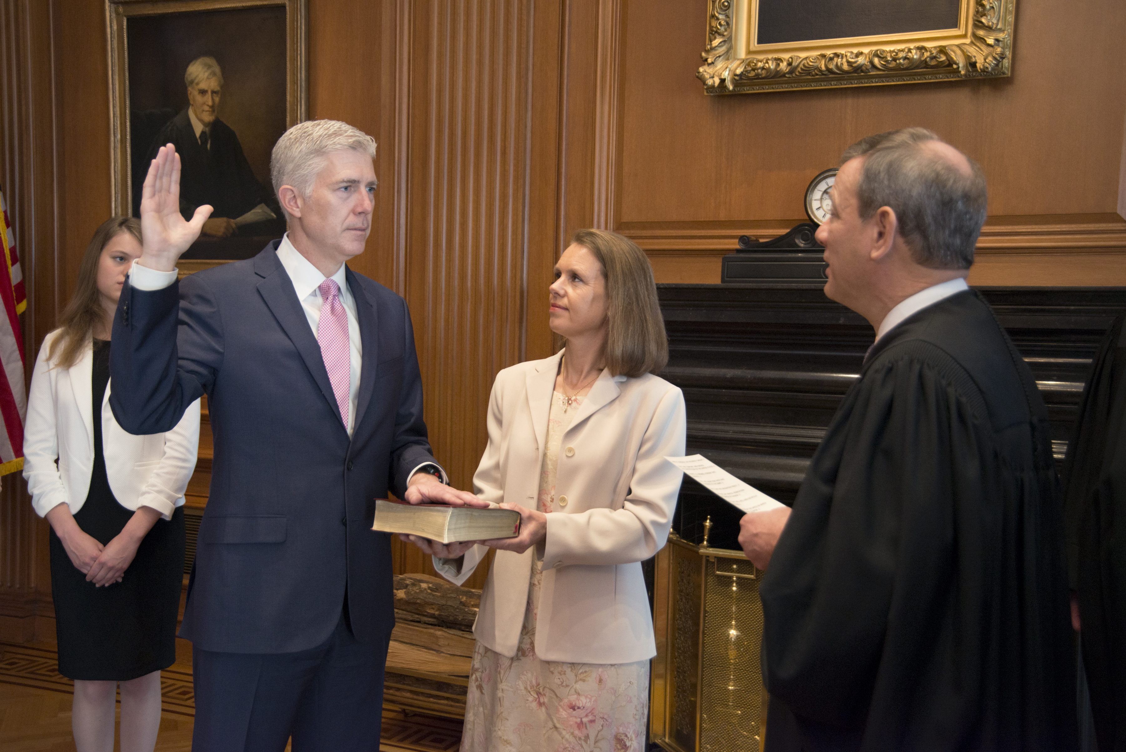 Judge Neil Gorsuch takes constitutional oath at Supreme Court