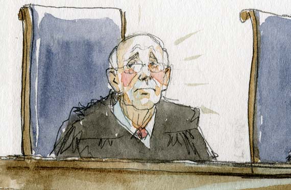 Supreme Court Public Information Officer Kathleen Arberg says she will check with the justice’s chambers to confirm our eyewitness recollections. But Breyer is still on the bench for the second case, she reminds us. Well, couldn’t she just call him there and ask? one smart-aleck reporter queries. (OK, it was this smart aleck.)