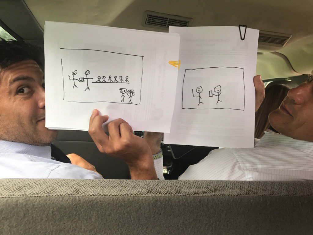 White House press secretary Sean Spicer is in the back part of the press section along with the White House press pool. They have an obstructed view. And some of the pool photographers, barred from bringing their cameras into the courtroom, will respond by tweeting the stick-figure sketches they drew.