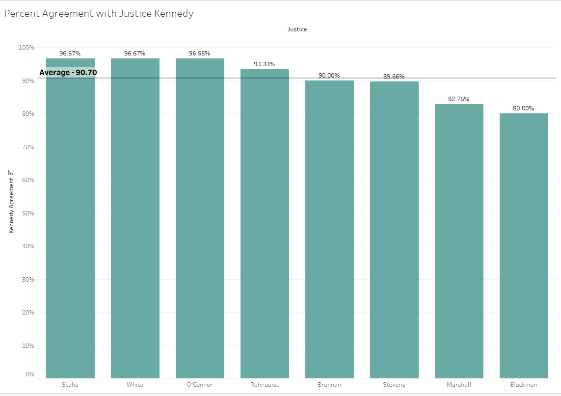 Over his first term, Kennedy was the fourth most conservative justice and had a very similar score to that of his predecessor, Justice Lewis Powell, in Powell’s final years on the court.