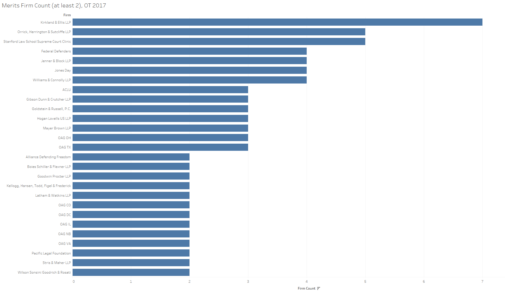 Similar to the firms of record on the merits, some of the top amicus firms on the merits are driven by one attorney’s participation, while other firms have more distributed resources.