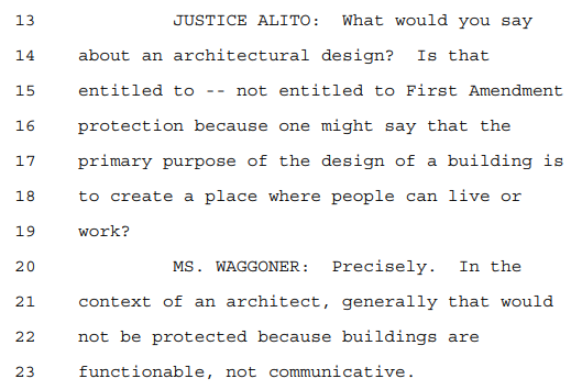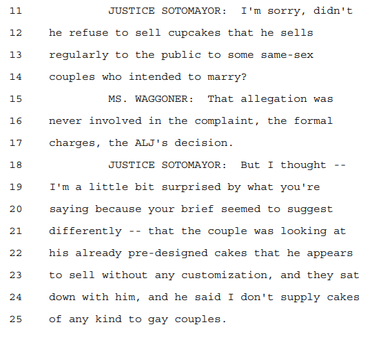 Contrastingly, Justice Samuel Alito, a likely vote for the cake artist, threw the same attorney a softball during this interaction:
