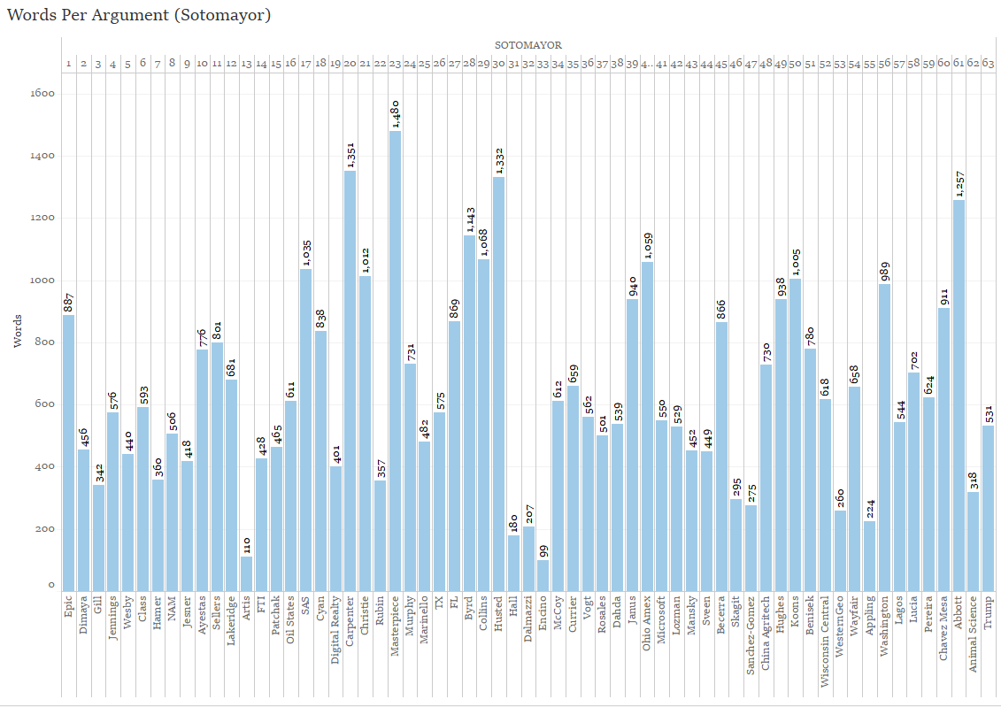 Moving in the direction of the most active justices at oral argument, Sotomayor was regularly near the top in terms of words spoken.
