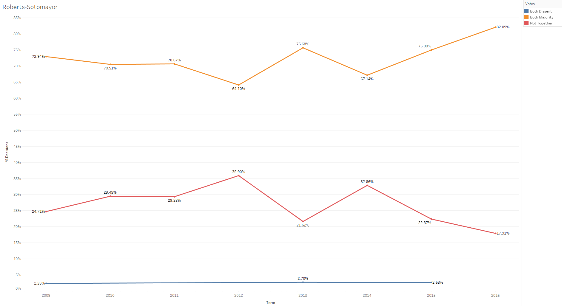 We can see similar movement in the voting relationship of Roberts and Sotomayor.