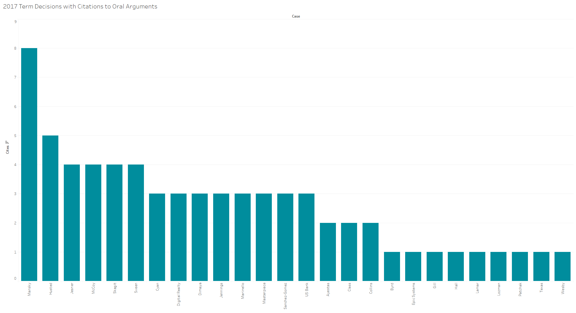The justices cited oral-argument transcripts in 69 distinct instances in opinions this term (Multiple citations in one place were treated as one instance.). The case breakdown of where these cites appeared is as follows: