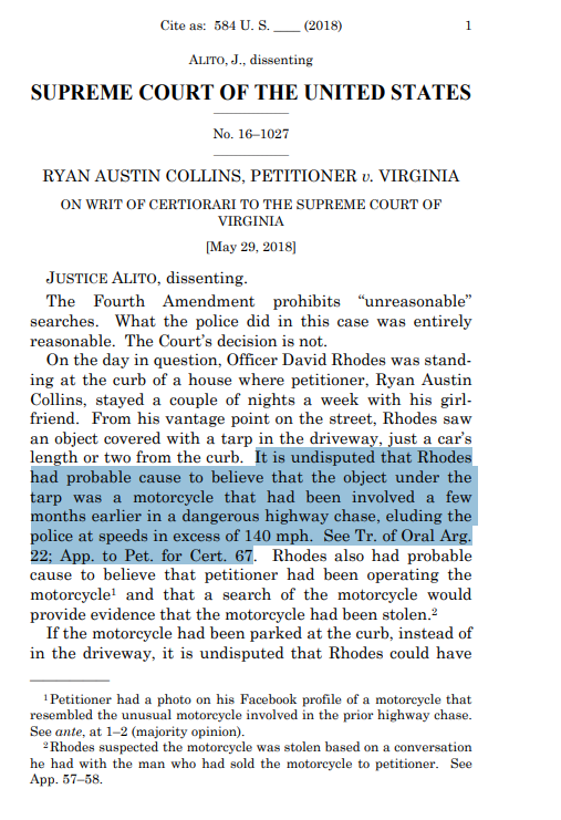 Each of these types is easily identifiable. Here is an example of a citation to a concession from Alito’s dissent in Collins v. Virginia: