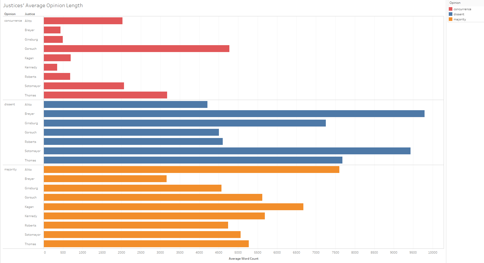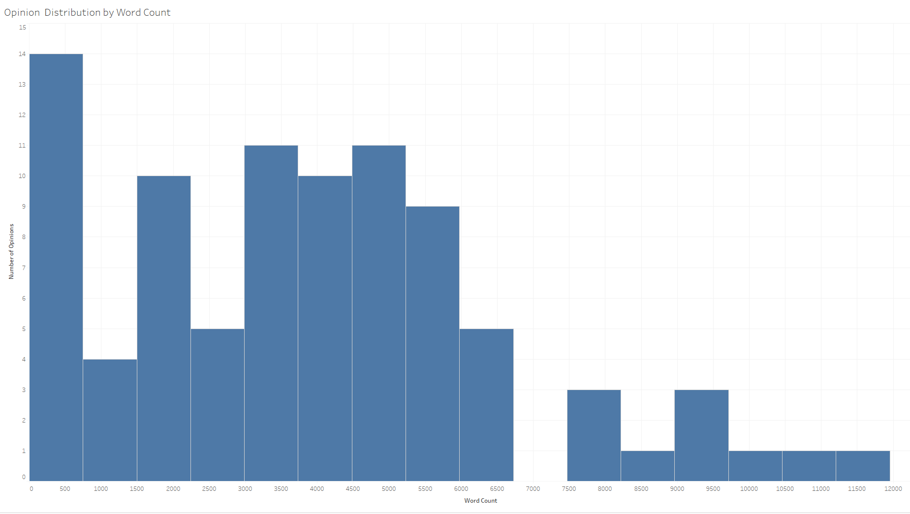 Although the distribution is clearly skewed to the low end based on many of the justices’ curt separate opinions, many of the opinions are also in the 3,000 to 5,000 word range.