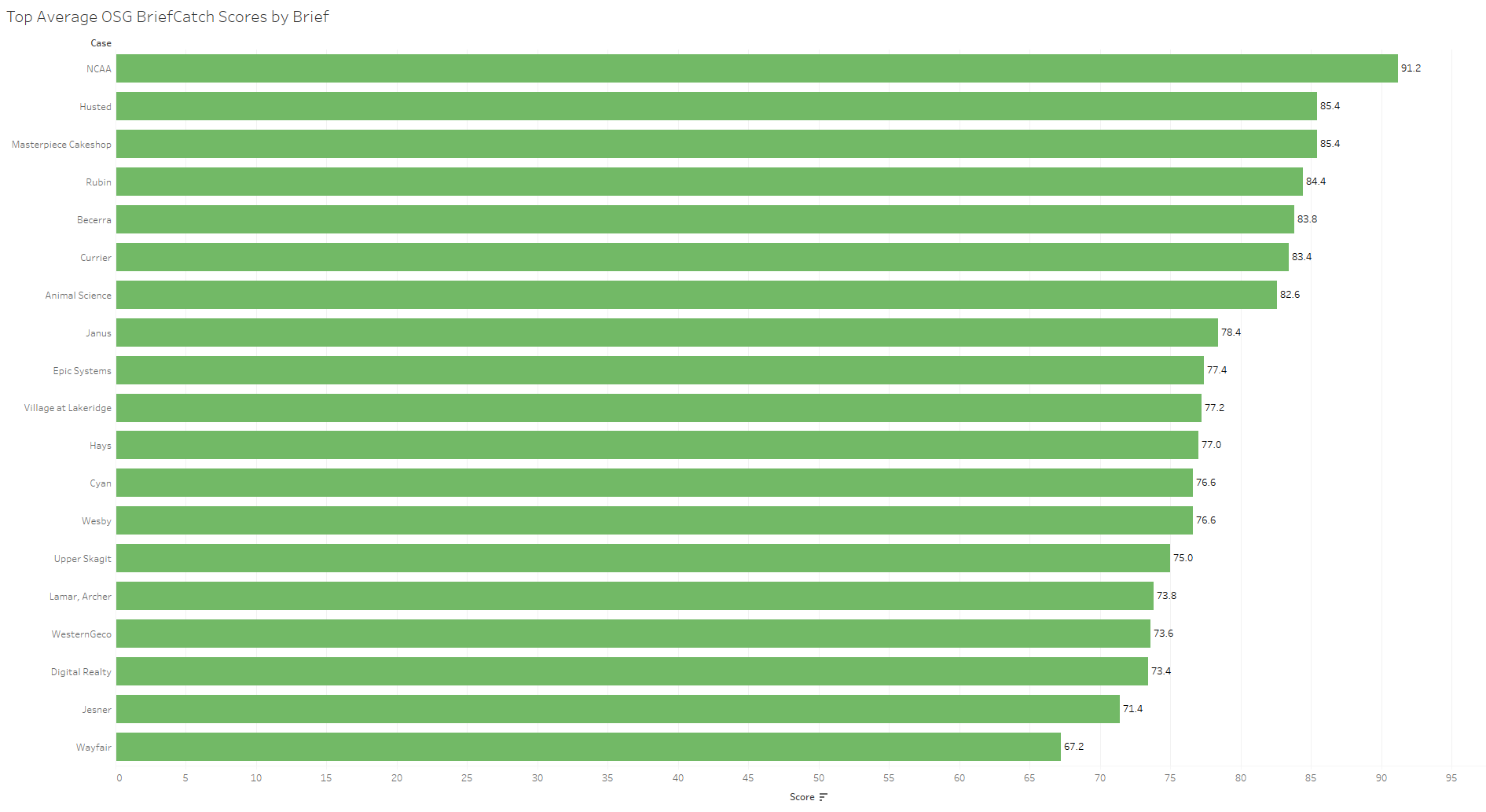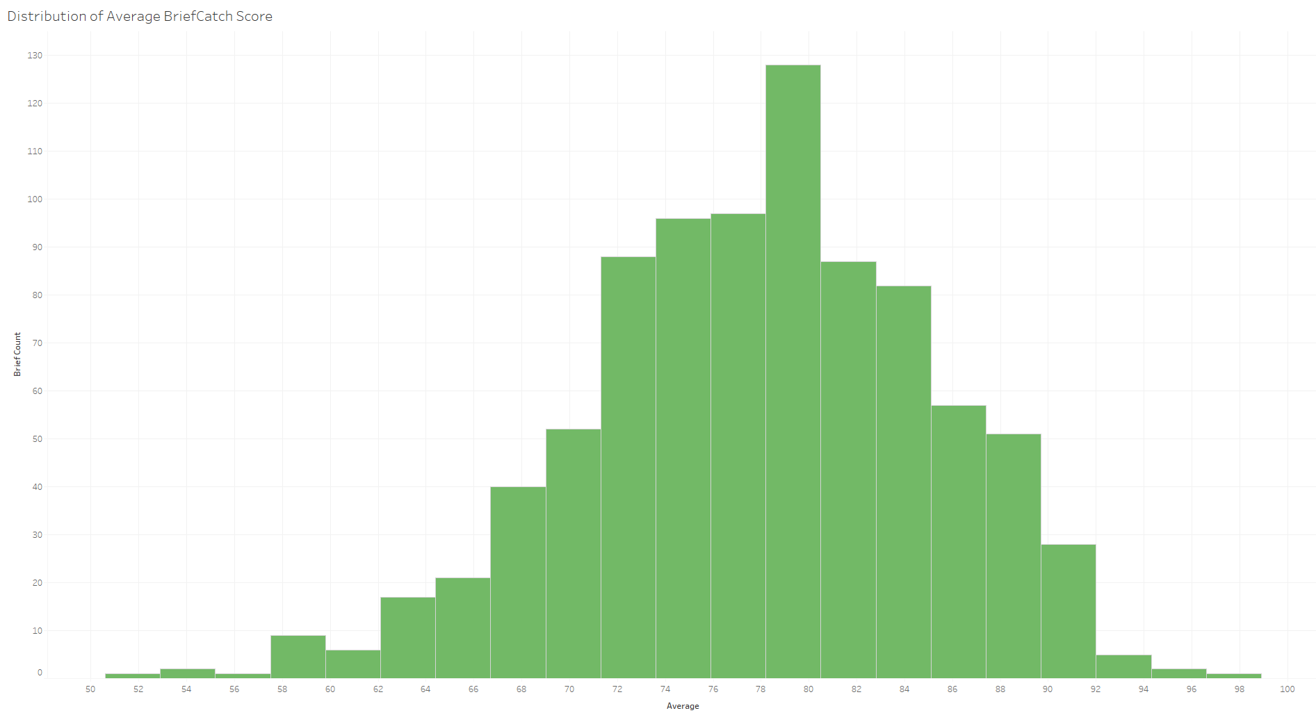 This shows that most of the briefs’ average scores were between 78 and 80, but that some scores were in the low 50’s and others were in the high 90’s.
