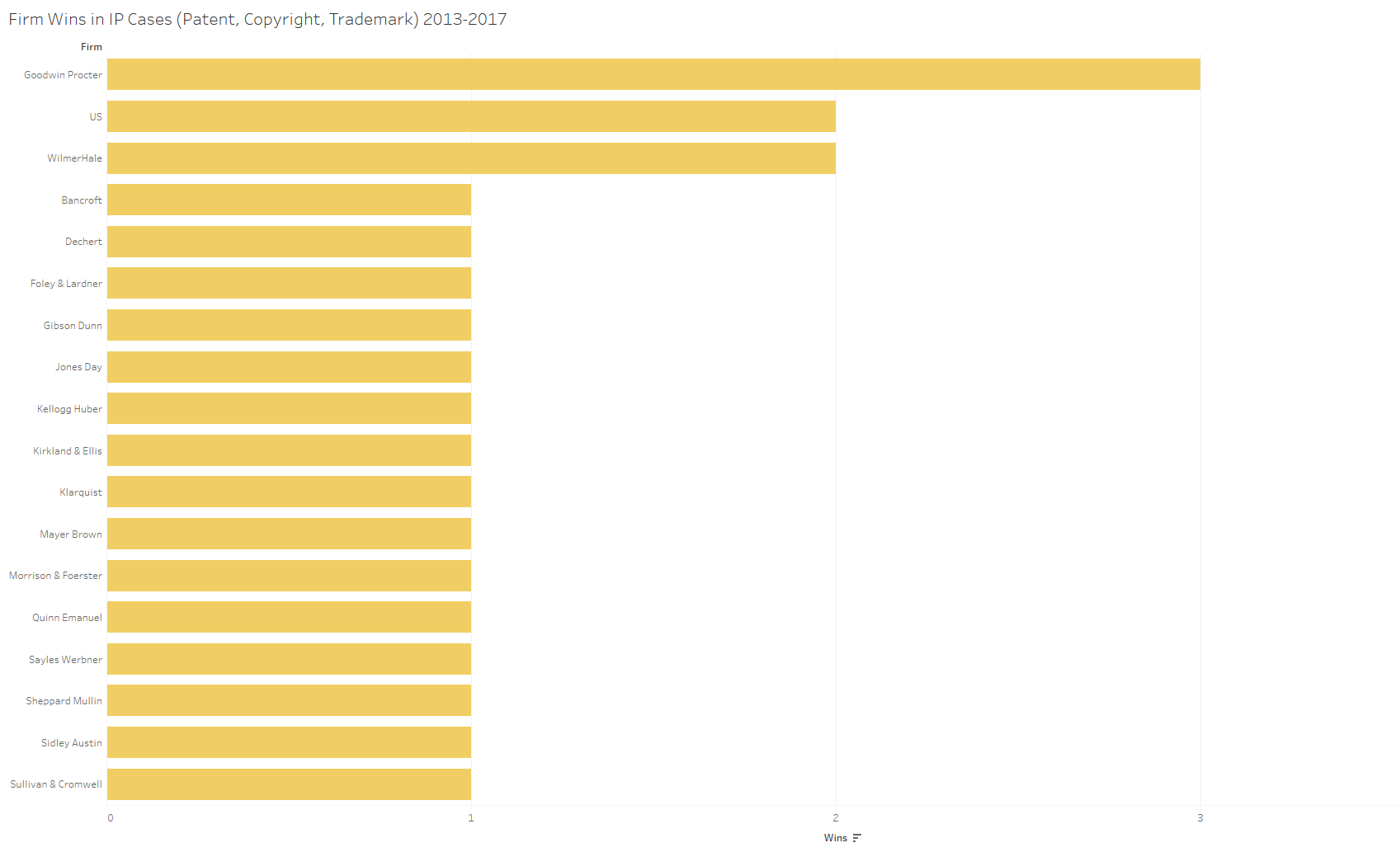 William Jay’s firm, Goodwin Procter, was the most successful thanks to Jay’s three argument victories. Aside from OSG and WilmerHale, which each had two wins, all the other firms in this area had one.