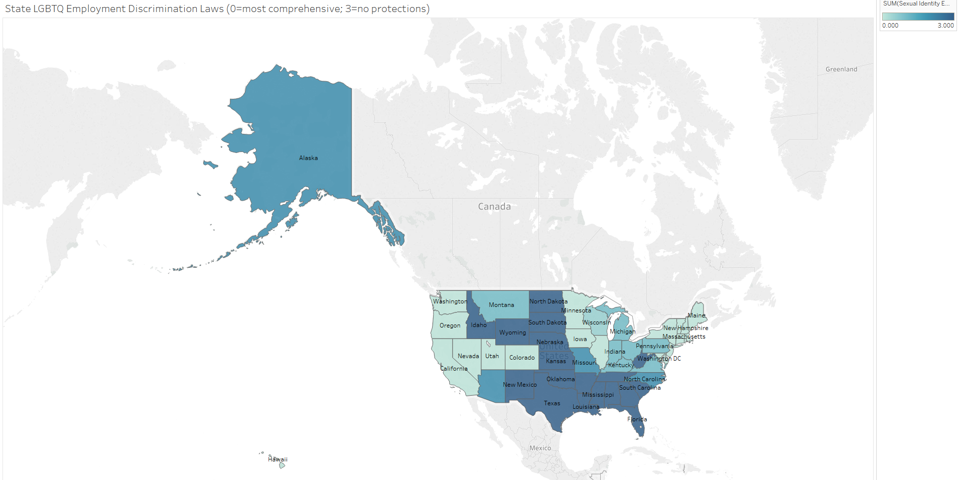 There is no universal standard for states’ policies on employment discrimination based on gender identity and sexual orientation. This is an issue not often confronted by the Supreme Court but one that could very well arise in the near future. The court did recently deal with employment discrimination based on gender in Young v. UPS and almost heard a case regarding a dispute on transgender use of bathrooms in Virginia schools in Gloucester County School Board v. G.G., before the Trump administration changed the direction of the relevant federal policy. State laws ranging from least to most protective as identified by the Human Rights Campaign are as follows: