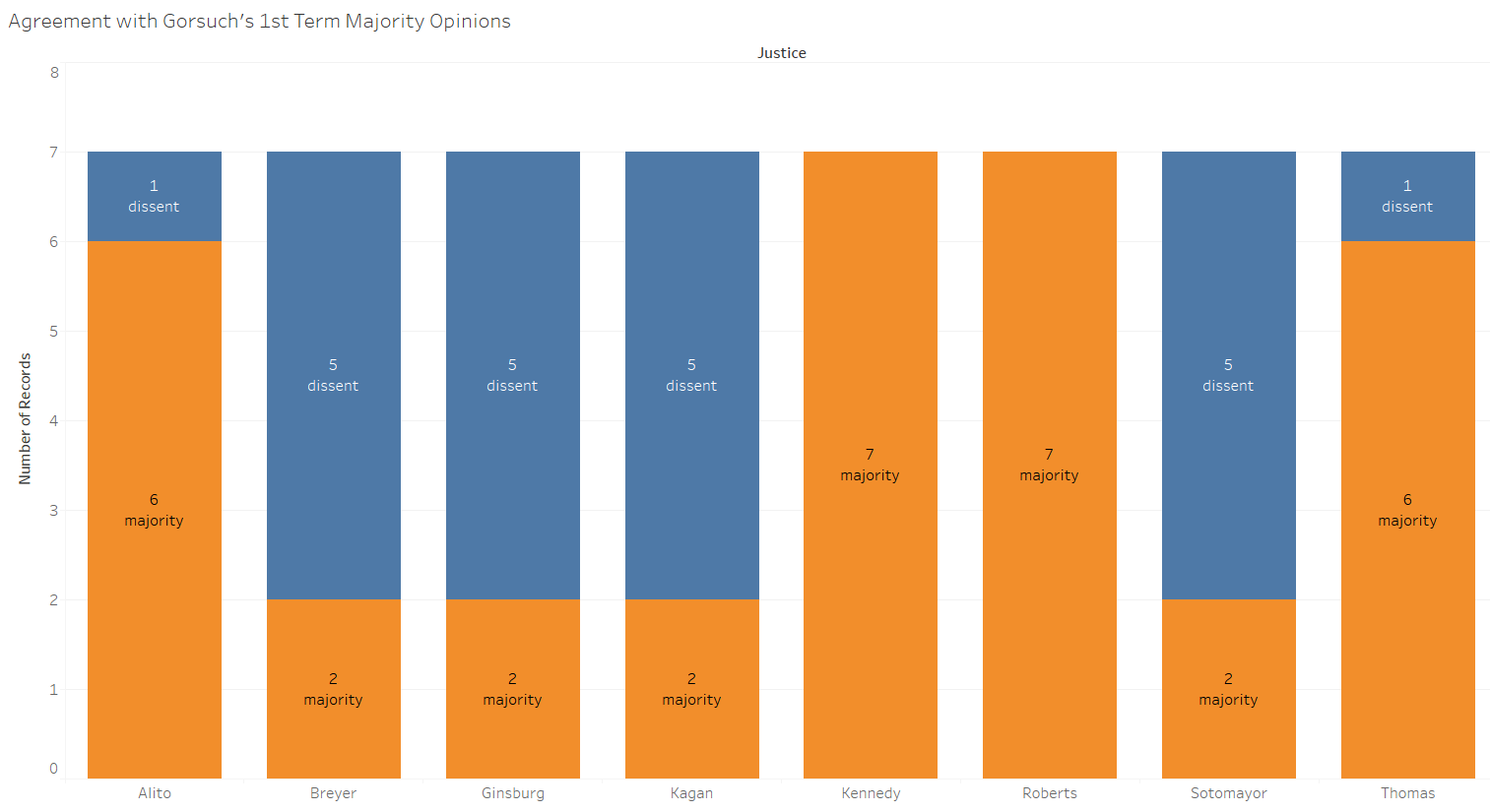The same held true for Gorsuch — and it was even more pronounced because Gorsuch authored majority opinions in many tightly decided cases.