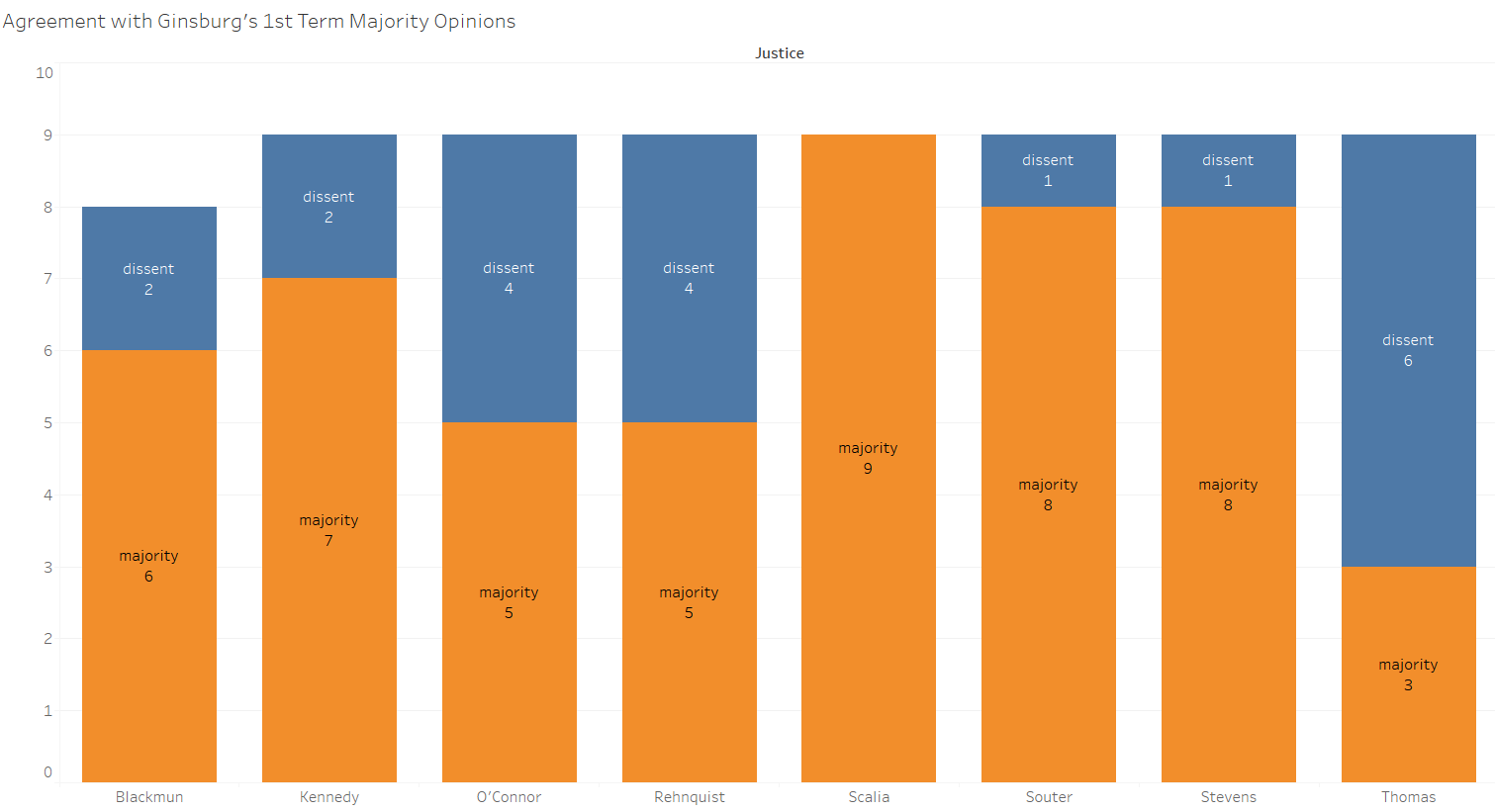 Ginsburg’s majority coalitions tended to be built with the liberal justices even in her first term on the court.