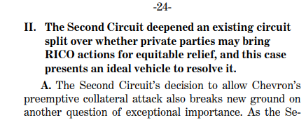 This snippet from the Donziger petition presents multiple n-grams that underscore the case’s importance to the court. Beyond the importance of the issue conveyed in the petition and the vehicle for resolution, this small section describes other elements often relevant to the court, such as a “deepened … circuit split.” Within this section heading and three lines of text, Gupta provided at least three reasons for why the justices should hear this case.