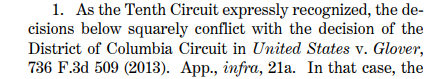 Another set of n-grams that appeared more frequently in experts’ petitions involve the term “square.” “Square” is another way of intimating that something is on point: A square conflict may present an “ideal vehicle” for the court to resolve. Below is an example of this usage from Kannon Shanmugam’s granted petition in Dahda v. United States.