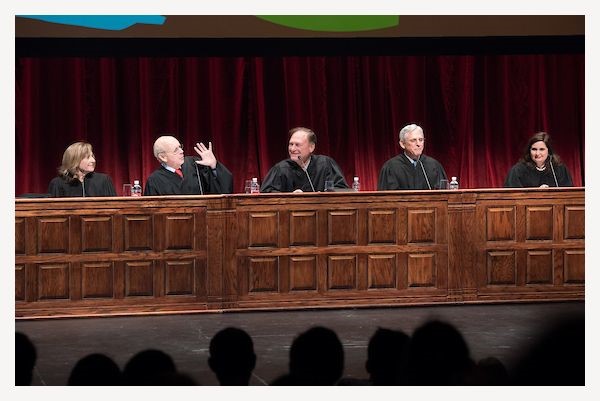 Twice a year, the Shakespeare Theatre Company hosts a mock trial based on one of that season’s plays. On Monday night, Alito, Breyer, Garland, Judge Jennifer Elrod of the United States Court of Appeals for the 5th Circuit and Judge Amy Jackson of the United States District Court for the District of Columbia presided. The question: whether King Henry VII must return the property and goods Richard III confiscated from the Duke of Buckingham upon Buckingham’s execution. But legal technicalities quickly took a back seat to a riotous comedy revue featuring some very unlikely players.