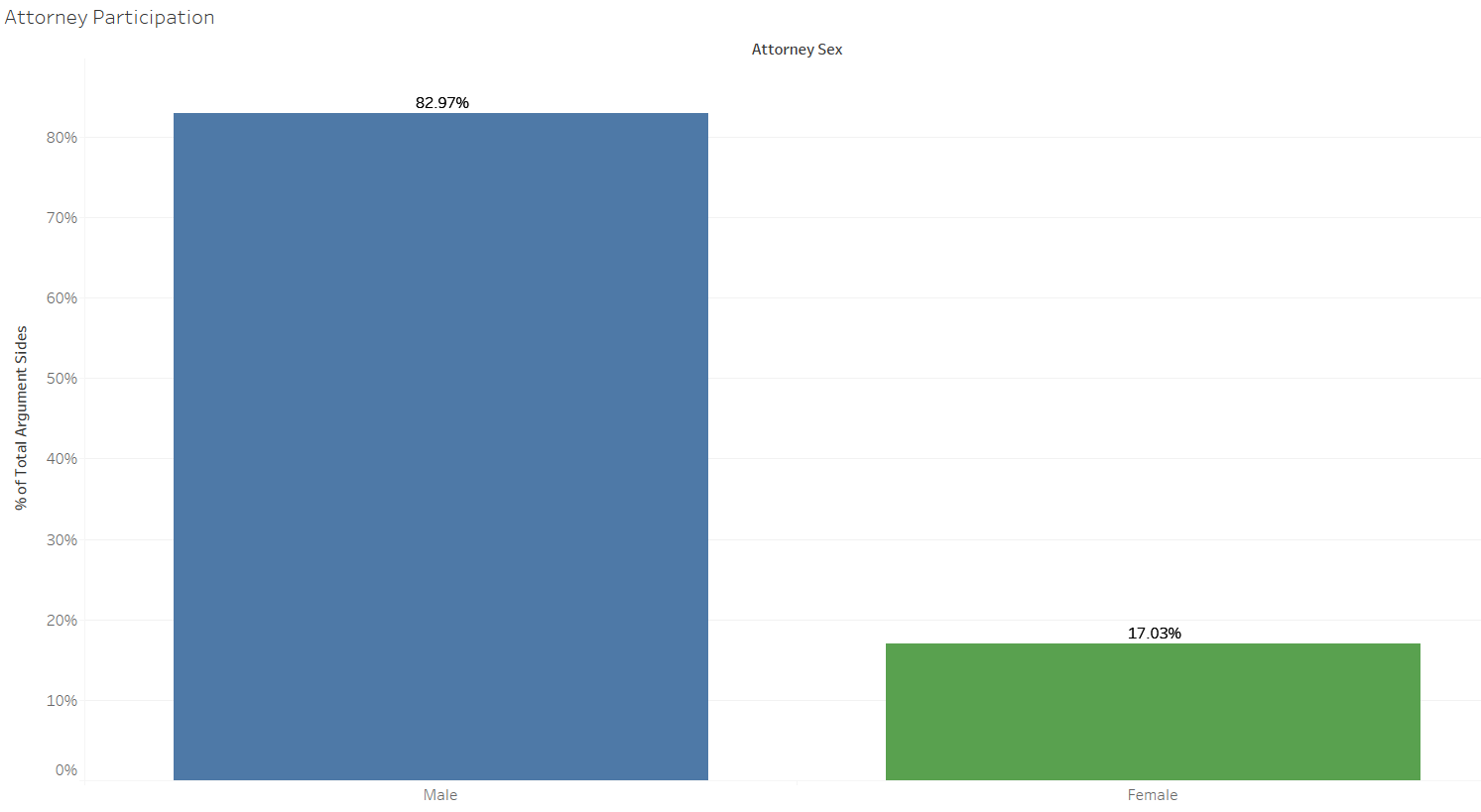 Supreme Court oral arguments are and historically have been a male-dominated enterprise, especially with regard to the arguing attorneys. Women, for example, only made up about 18 percent of all the attorneys in arguments between the 2012 and 2016 Supreme Court terms. The 2018 term was much the same, as the figure based on relative attorney participation below shows.