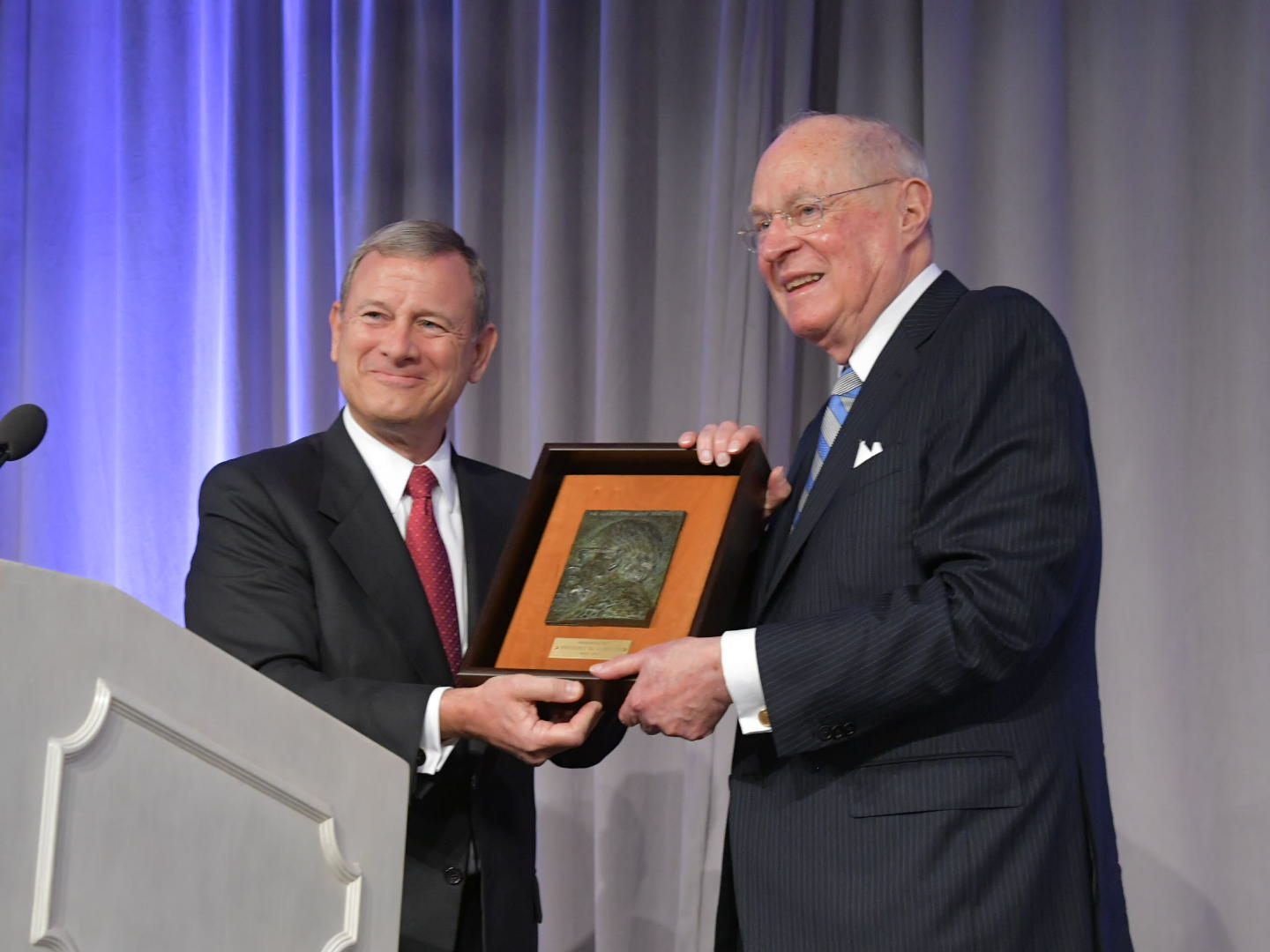 Before Kennedy spoke, Chief Justice John Roberts presented his former colleague with the award. As if foreshadowing the remarks to come, Roberts praised Kennedy for speaking “consistently and powerfully about the importance of civility in our national dialogue.” Kennedy “has reminded us that freedom is taught, not merely given,” Roberts continued, “and he has devoted his time and considerable energy to asking all Americans to remember that.”