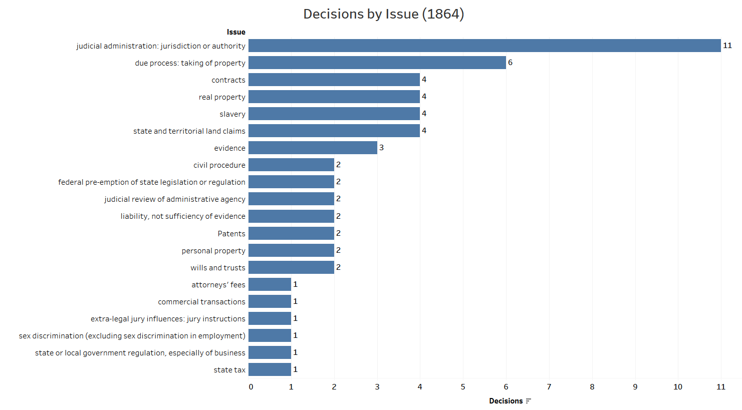 Looking at the 1864 term, for example, the court decided more cases dealing with jurisdictional issues, related to when the court had the ability to hear a case, than any other case type.