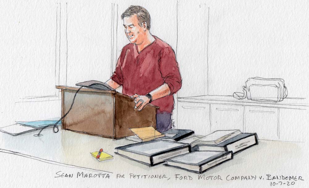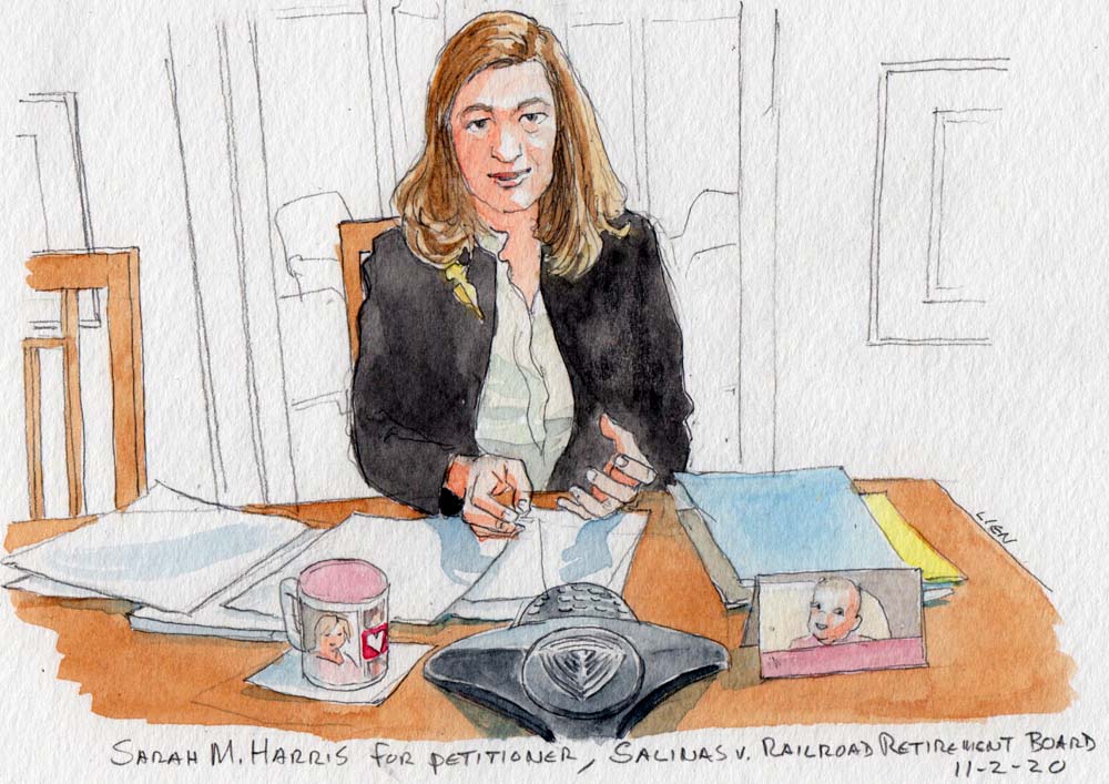 The resulting sketches, which SCOTUSblog has been publishing throughout the term (and all of which are reproduced below), provide a behind-the-scenes glimpse at how some of the nation’s top appellate advocates have adapted to the new normal. Perhaps they also stand as a microcosm of the diversity of work-from-home environments in which so many members of the legal community have found themselves this year.