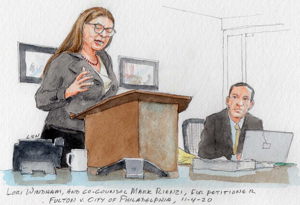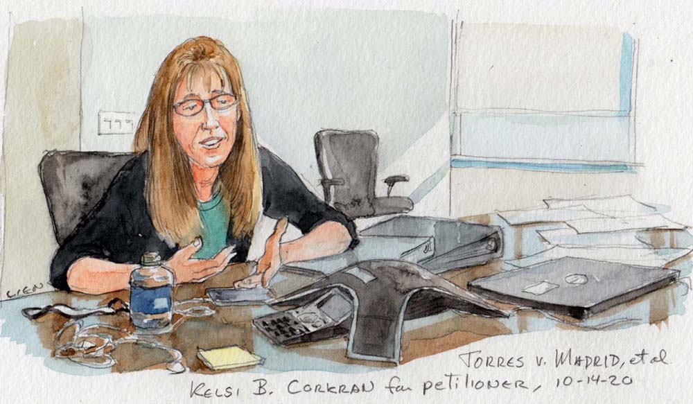 Will we ever see a work-from-home sketch of one of the justices? “I don’t think you will,” Lien said. “It sounds like the policy is that they are not going to send any photographs.” Until that policy changes, sketches of the advocates will have to suffice.