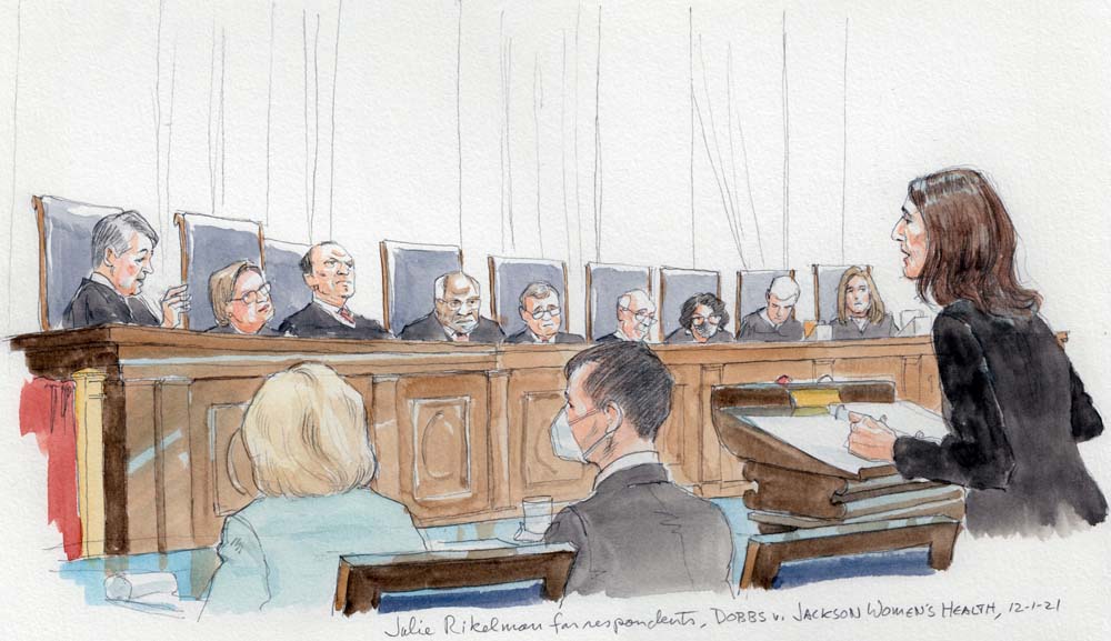The bread and butter of Art’s work has focused on capturing the oral arguments themselves. He has covered some of the most significant arguments of our generation, including Dobbs v. Jackson Women’s Health Organization and New York Rifle & Pistol Association v. Bruen just this past term. In those cases and hundreds of others, Art depicted the advocates, the justices on the bench, and the majesty of the courtroom itself. True to his name, Art’s courtroom sketches are genuine art, as he consistently managed to convey a sense of mood and action far beyond what viewers would expect from a “still life.”