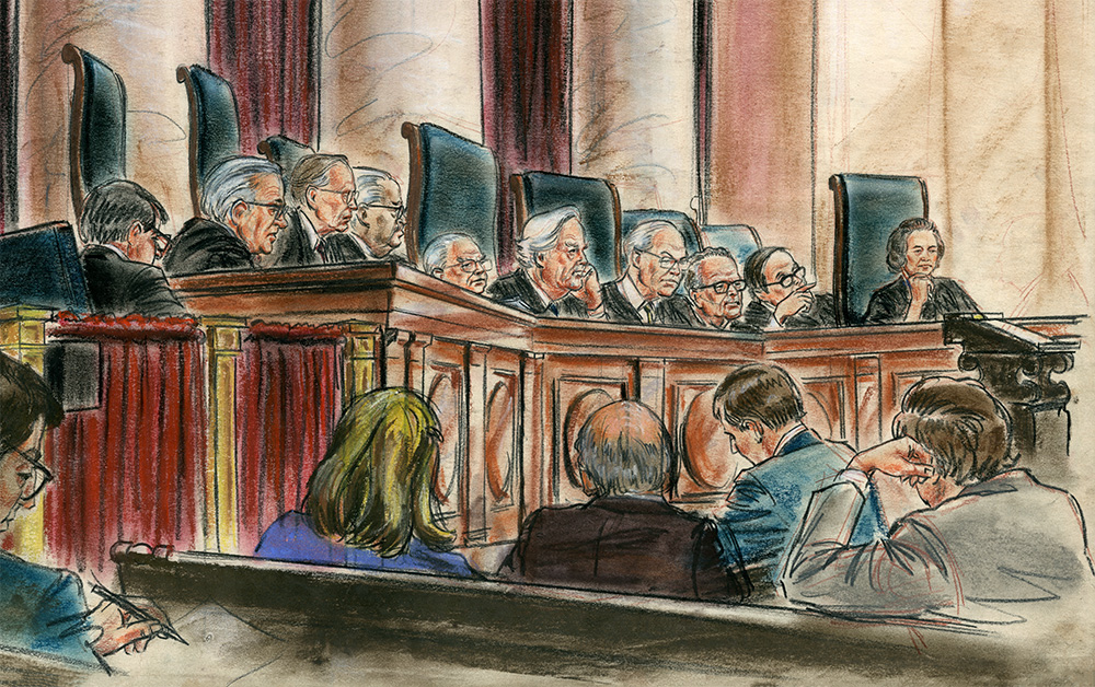 Although we will miss Art’s sketches, we will miss him even more as a colleague. As Art notes on his own blog, being a courtroom sketch artist is demanding and stressful, requiring work on a tight deadline. But despite these demands, Art never let us see him sweat. He was a consistently warm, cheerful, and unassuming presence in the court’s press room and in the seats set aside for journalists. We wish him a very restful retirement, with weekday mornings now filled with bike rides and leisurely cups of coffee with his wife rather than traffic-heavy car commutes to 1 First Street, and we thank him for sharing his considerable talents with the rest of us.