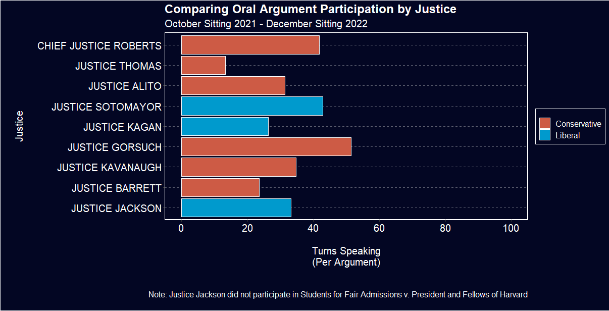 Interestingly, Jackson does not take nearly as many turns speaking as some of her colleagues.