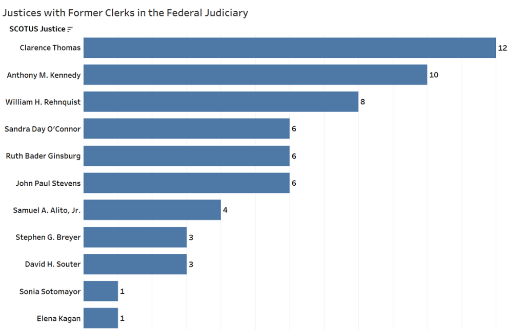 But that is not the full picture. The data also reveals how widespread former Supreme Court clerks are in the federal judiciary as a whole.