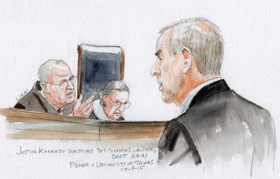 Equally, there was no doubt that there are three Justices clearly on the university’s side — Justice Ruth Bader Ginsburg, who would have upheld the plan two years ago and was the lone dissenter in that ruling, and Justices Stephen G. Breyer and Sonia Sotomayor. Sotomayor was a dogged questioner of the attorney challenging the Texas plan, Bert W. Rein of Washington, D.C. She was so excitedly involved that, twice, the Chief Justice cut her off in order to let Rein finish a thought.