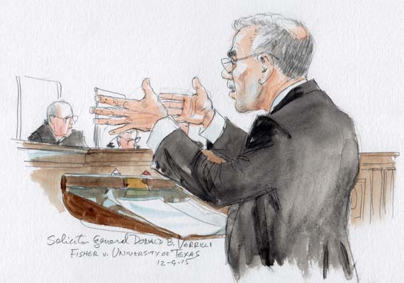 The third lawyer to appear, U.S. Solicitor General Donald B. Verrilli, Jr., spent most of his time urging the Court to preserve the option for universities to achieve racial diversity because of society’s strong need for minority leaders who could function effectively, in the military and business, in racially diverse environments. He also tried to shore up the university’s policy, using statistics to show that the number of minorities at the university had been rising steadily under the program in use since 2004 but now under new attack.