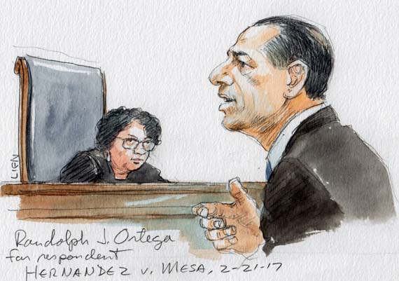 Justices Ruth Bader Ginsburg and Sonia Sotomayor were more supportive of the family. Ginsburg observed that, as a general matter, when an act outside one jurisdiction causes an injury inside another jurisdiction, the rules governing the ensuing lawsuit can come from either jurisdiction. Discussing this case specifically, she described the dispute as having the “United States written all over it.” And when attorney Randolph Ortega, representing Mesa, emphasized that the United States could prosecute Mesa in the United States for violating his orders, Sotomayor retorted that such a prosecution wouldn’t provide any compensation to Hernández’s family for the emotional distress that they had suffered.