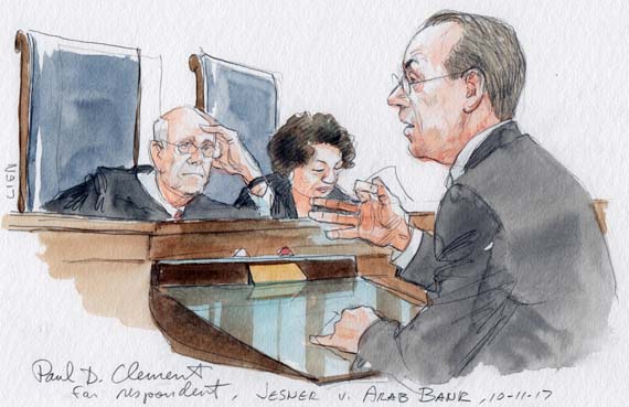 A central issue at today’s oral argument was exactly how to characterize the court’s inquiry in this case: Should it look at whether there is a consensus that financing terrorism is generally accepted as a violation of international law, or instead at whether there is a consensus that corporations can be held liable for such violations? For Paul Clement, who argued on behalf of Arab Bank, the answer was the latter. And, he stressed repeatedly in his half-hour at the lectern, there is no specific and widely accepted norm of international law that would allow corporations to be held liable for financing terrorism.