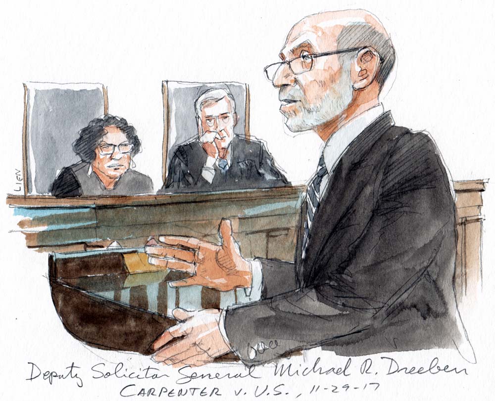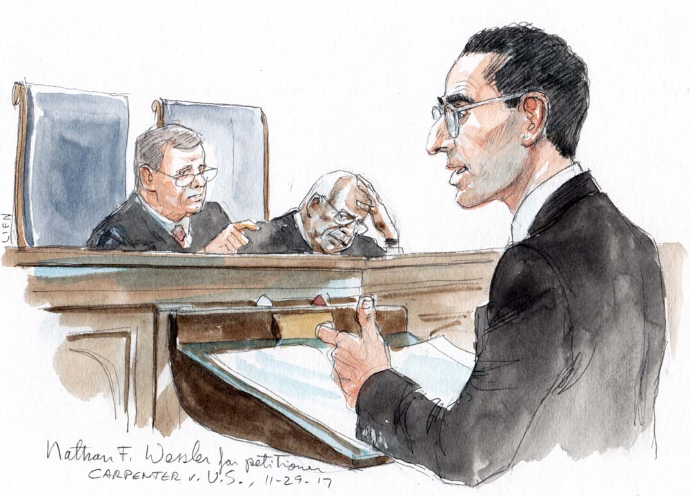 Defending the decisions below, Deputy Solicitor General Michael Dreeben, who took a brief break from his duties working on special counsel Robert Mueller’s investigation, drew a firm line in the sand. The technology at issue in Carpenter’s case may be new, but the legal principles implicated by the case are not, Dreeben told the justices. The case is governed squarely by the court’s decisions in United States v. Miller and Smith v. Maryland, which embody what is known as the “third-party doctrine”: The Fourth Amendment does not protect records or information that you share with someone else. So Carpenter’s case (and others like it) hinges, Dreeben contended, on how the government got the information. And here, he emphasized, the cellphone providers created the records for their own purposes and gave them to the government; the government did not collect the data itself.