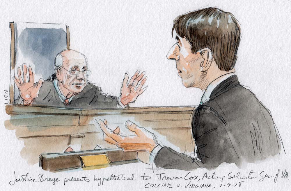 Cox noted that the state’s intermediate appellate court had decided the case on the ground that police needed to act quickly, because “Collins had been alerted to the police’s interest in the vehicle.” Although Virginia would “rather win on the categorical exception,” Cox acknowledged, the commonwealth also believes that it could prevail because of the exigent circumstances.