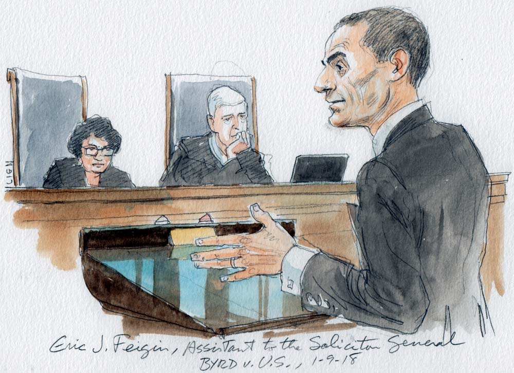 Feigin countered that, as an unauthorized driver, Byrd had “no connection” to the car, describing him as “an interloper in the rental agreement.”