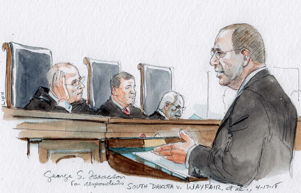 Kennedy, who had invited the challenge to Quill with his concurrence in 2015’s Direct Marketing Association v. Brohl, asked only a couple of questions, in which he appeared to be restating the arguments of Isaacson or others. He referred to a proposition, whether it was that of the parties or his own, that “this court has made a statement of constitutional law that … has now, especially in light of the cyber age, proven incorrect.”