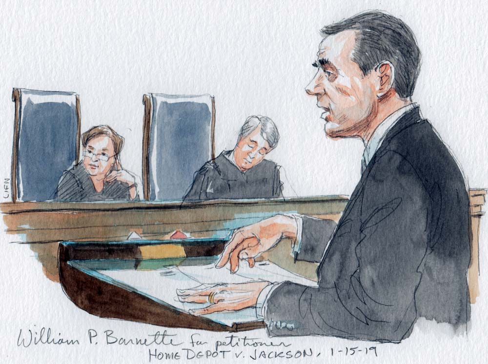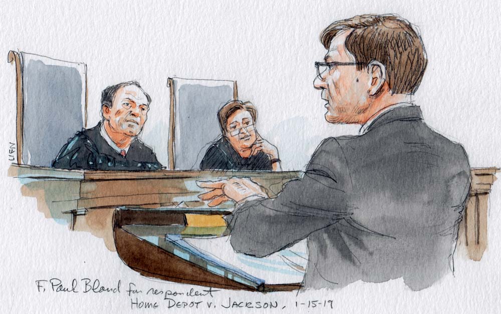 Bland was reluctant to embrace the position that Kagan had articulated that it is irrelevant whether Home Depot was or was not a defendant because Jackson had not filed a “civil action” against Home Depot. Bland spent much of his argument trying to resist comments by Alito and Justice Brett Kavanaugh suggesting that Home Depot must be accepted as a defendant. Alito, for example, commented at one point that if “we look at the text, we have a reference to the defendant or the defendants. So Home Depot would qualify there, would it not?” When Bland suggested that the traditional understanding of Section 1441 meant that Home Depot was not a defendant, Alito was wholly unpersuaded: “You’re reading things into it. … [I]n the ordinary sense of the term, are they not defendants? …. They are some kind of defendants.”