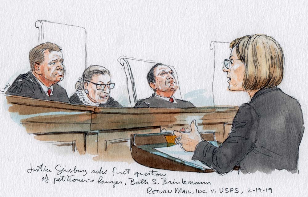 Justice Ginsburg asks first question of petitioner’s lawyer, Beth S. Brinkmann (Art Lien)