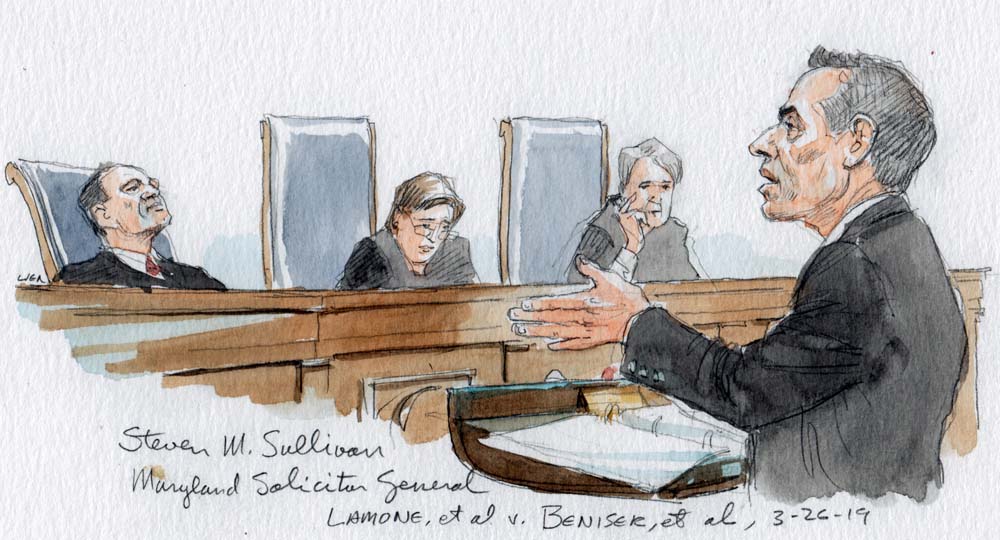 In the Maryland case, Steven Sullivan, the Maryland solicitor general, argued for the state, which agrees that the Supreme Court should establish a workable standard to ferret out unconstitutional partisan gerrymandering but has nonetheless urged the justices to overturn the lower court’s decision in this case.