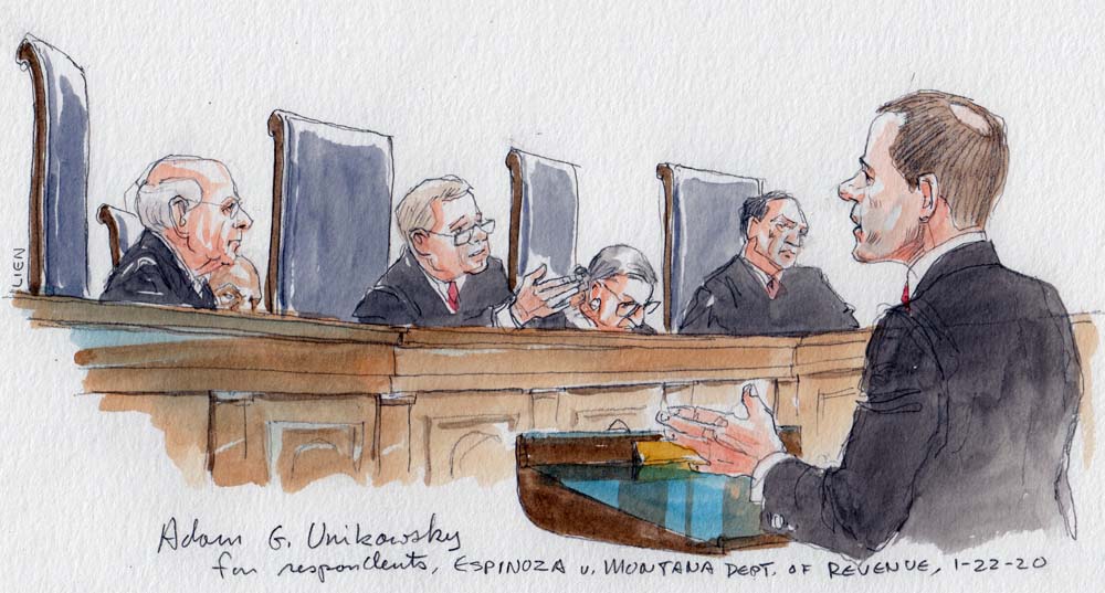 Breyer and Roberts both expressed concern about what the broader implications of a ruling for the parents might be – specifically, whether it might affect government funding for public schools. Both Wall and Komer focused on the narrower question before the justices, with Komer emphasizing that his clients were in the Supreme Court only because Montana offered funding beyond the public schools. “We are not arguing,” Komer said, “that the state couldn’t just fund public schools.”