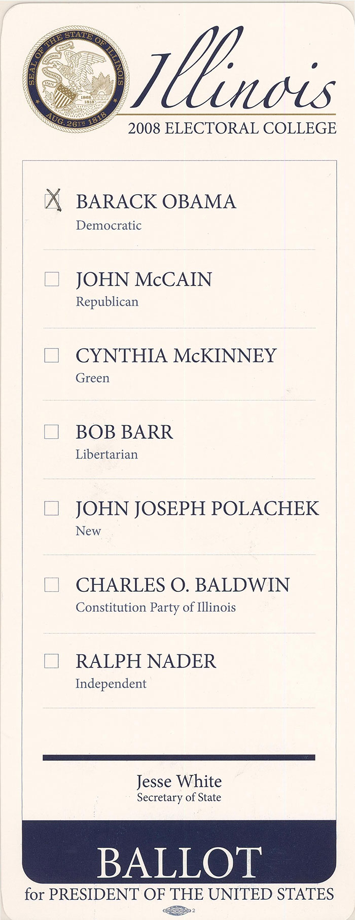 Ballot design. If electors acted in a ministerial role only, how can we explain states’ routinely handing electors ballots that clearly anticipate discretion? Here are two examples of many, from Illinois (2008) and Texas (2016):